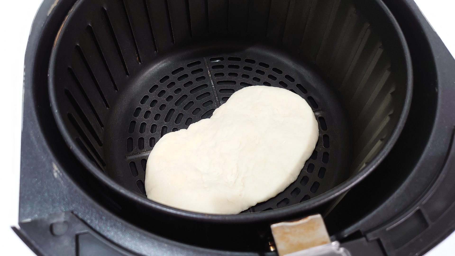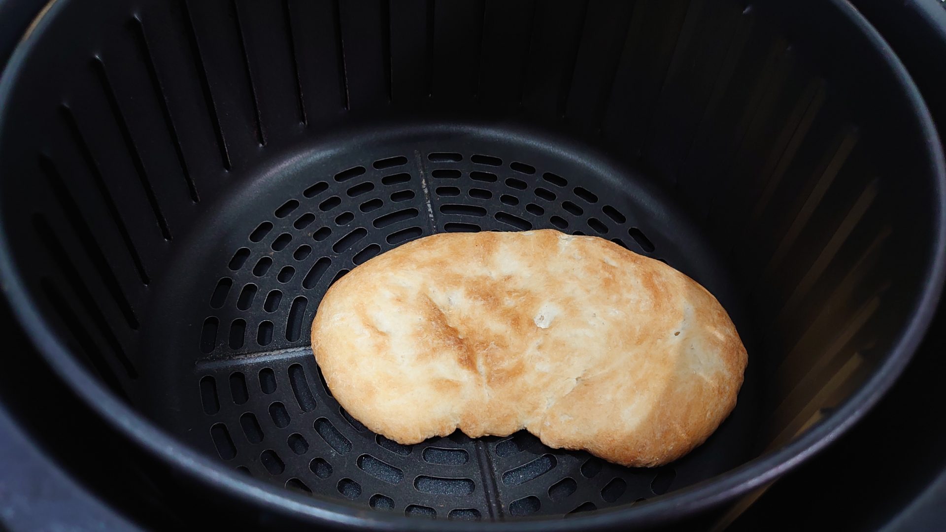 ここで両者の性質の違いが浮き彫りになりました。ナンの形状は表面に凹凸があるので完全に平面ではありません。よってフライパンの場合は直接熱が通る箇所のみ色がついていますが、ノンフライヤーの場合は熱風をあてるので点ではなく面で焼き上がります。そのため全体的に色がつくような仕上がりになっています。見た目的にはナンというよりパン。