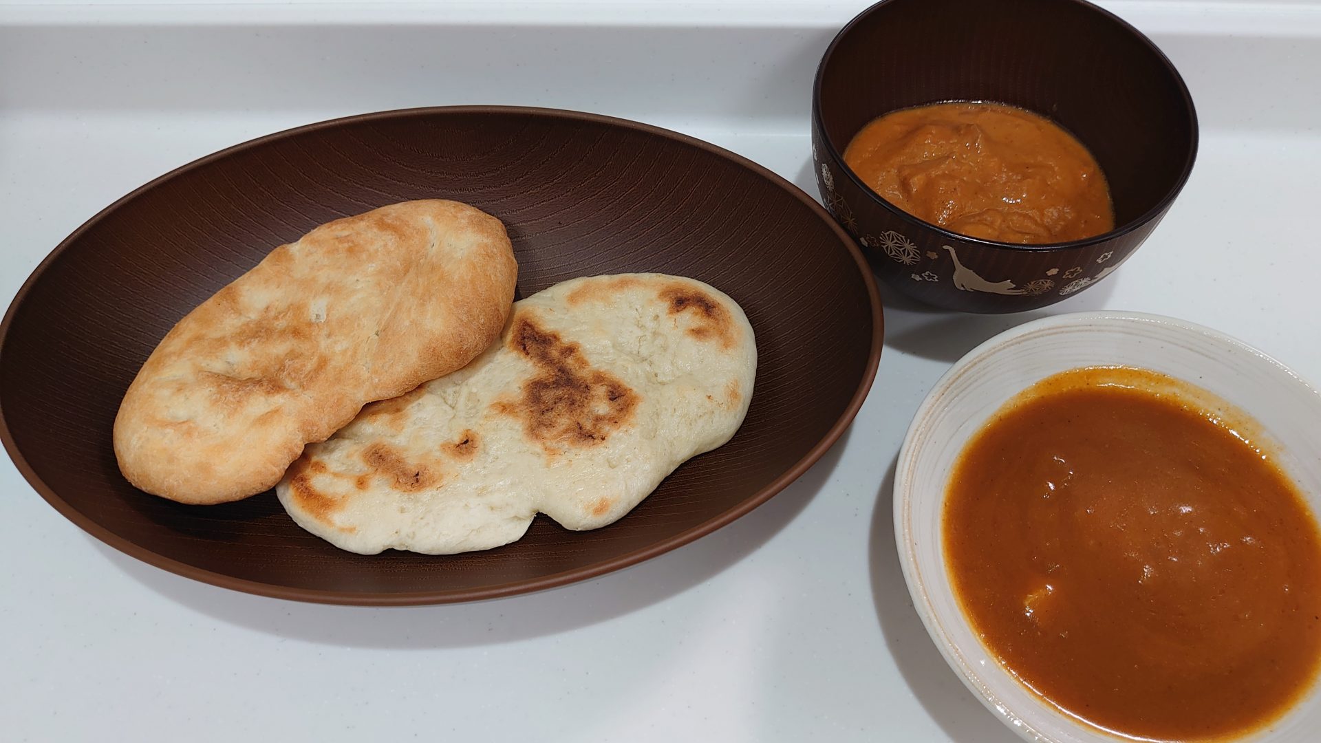 一方フライパンで調理したナンは当然ながら私たちのよく知っているナンそのものです。言わばフライパンで調理したナンが「王道のナン」であるなら、ノンフライヤーで調理したナンは「B級グルメ」のようなものです。ですので結果論で言えばジャイアンにもブタゴリラにもそれぞれの特徴があるように、どちらがいいかではなくどちらも良いが正解になるかと思います。