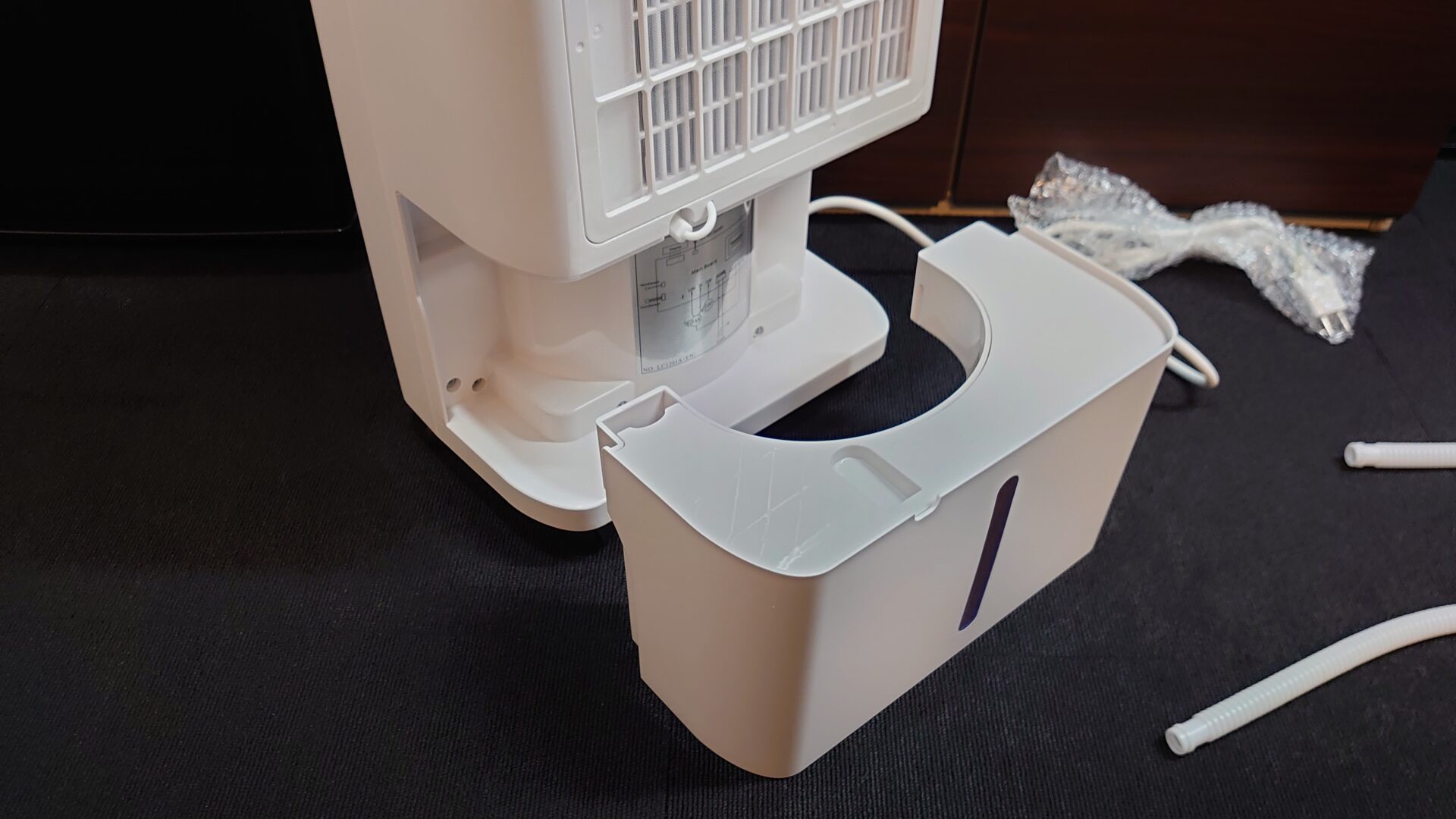 サイズは高さ46cm、幅30cm、奥行き19cm。重さは10kg以上あるので持ち運ぶのは決して楽ではありませんが、除湿機としては珍しくキャスターが付いているので転がして移動できます。