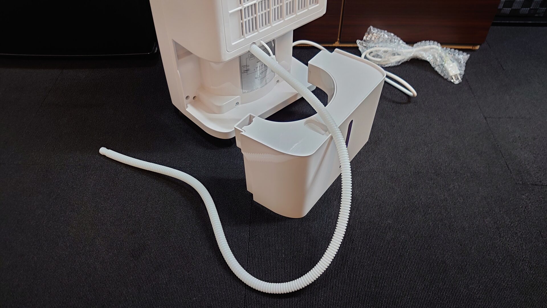 ドレンホースを繋げることでタンク容量を無視した連続運転が可能になります。洗濯物が多いとすぐにタンクが満杯になるので、これは非常に助かる付属品ですね。