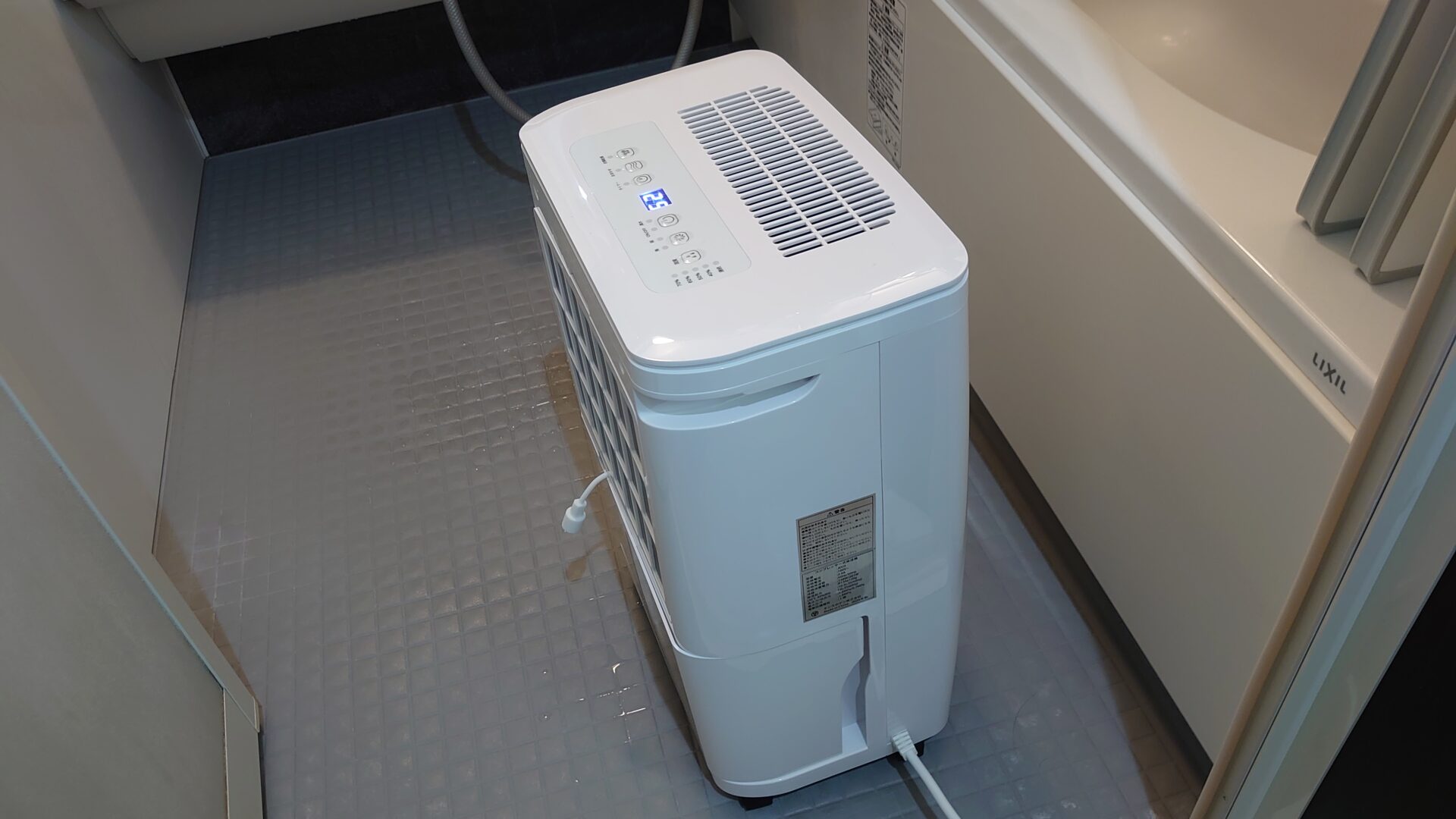 かといって浴室乾燥機はガス式ではなく電気式なので、すぐに乾くわけでもなく電気代がエアコン以上に高いので実用的とは言えないのが現実…。しかしながら除湿機であればすぐに乾かないのは同じだとしても電気代は破格的に安く、バスルーム内で使用すればカビ防止にもなるのでまさに一石二鳥といった感じです。