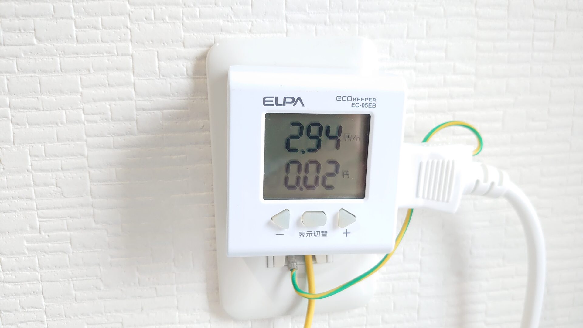 おおよそ1時間あたり0.02円です。コンセントを1日外さないことを想定して、1日あたりの待機電力は約0.24円、1ヶ月あたりの待機電力は約7.2円となります。