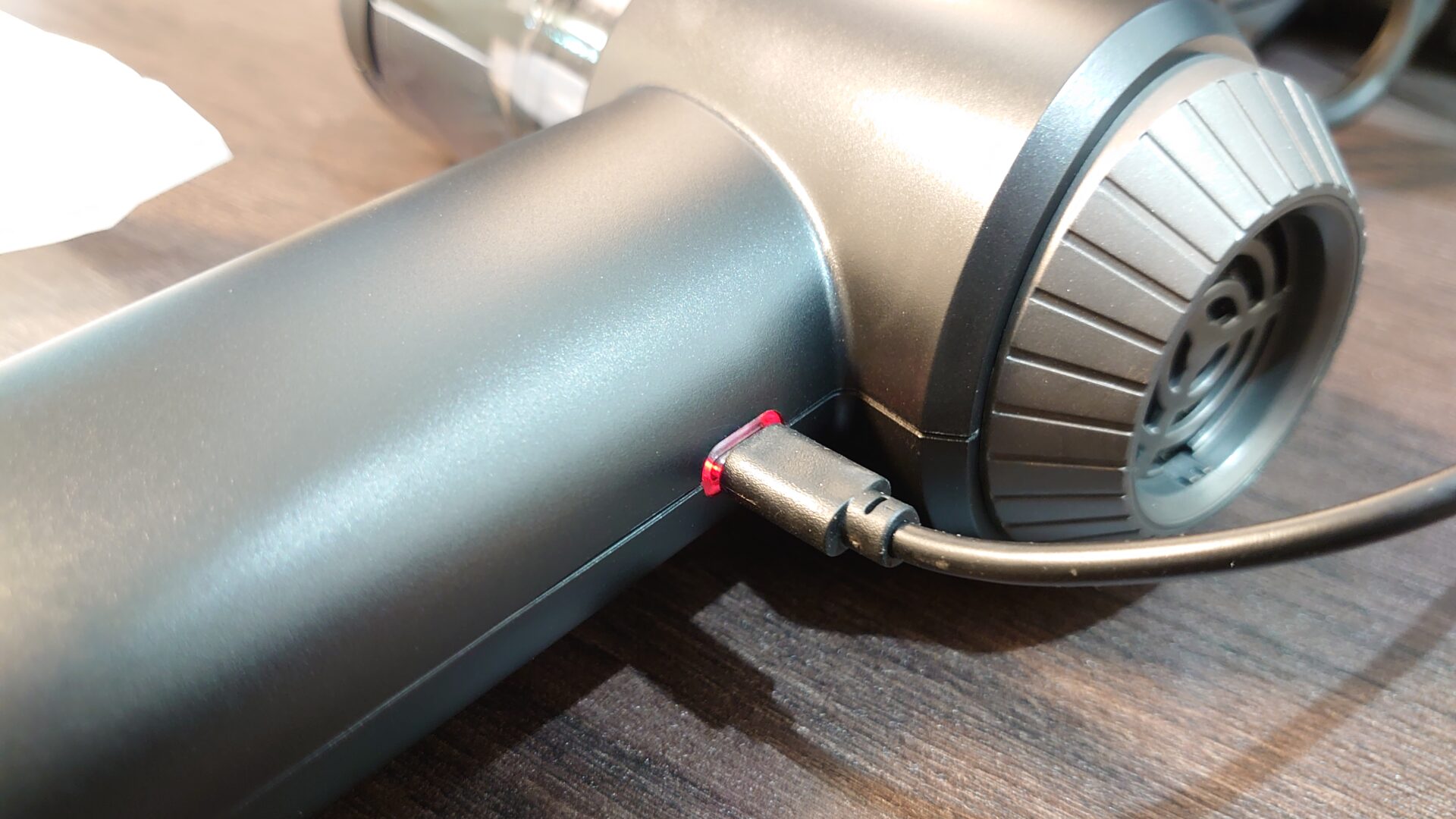 白色LEDはなぜかグリップの人差し指がかかる箇所に搭載されているので隠れてしまって使い勝手が悪いです。そのせいか照射範囲も思ったところと違うイメージ。一応暗所では写真のように照らすことは可能。ブロワー機能に関しては道路の落ち葉とかを吹き飛ばすのではなく、キーボード上の埃を取り除く程度であれば問題なく使用できます。ちなみに音はうるさめ。