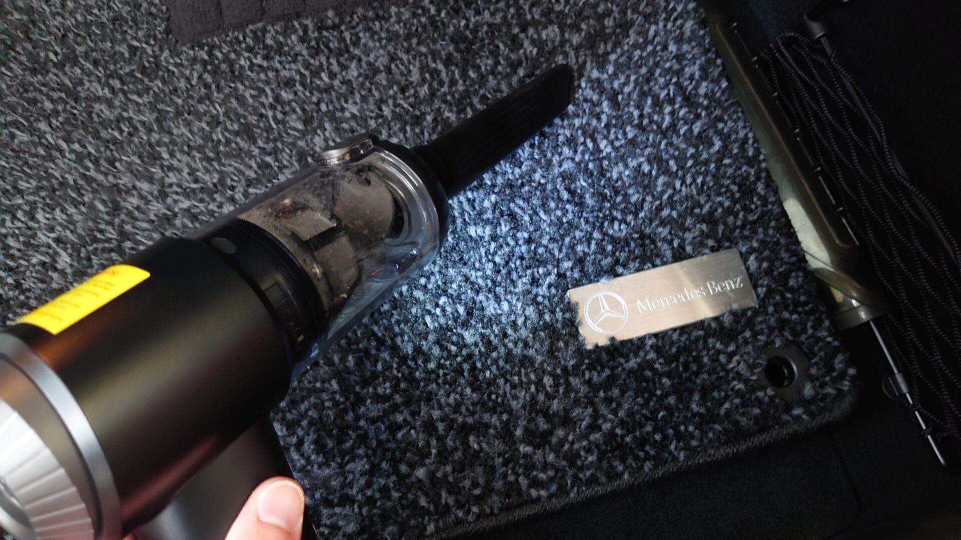 掃除機あるべきものは肝心の吸引力ですが、控え目に言って「普通」です。1円硬貨は持ち上がりますが、500円硬貨は持ち上がりません。車のシート上の埃程度なら吸い取ることが可能ですが、フロアマットの繊維質に絡まったゴミは当然のごとく取れません。しかしながら車のフロアマットに絡まったゴミについてはどの掃除機でも取れないことが多いのでさほど問題ではありません。