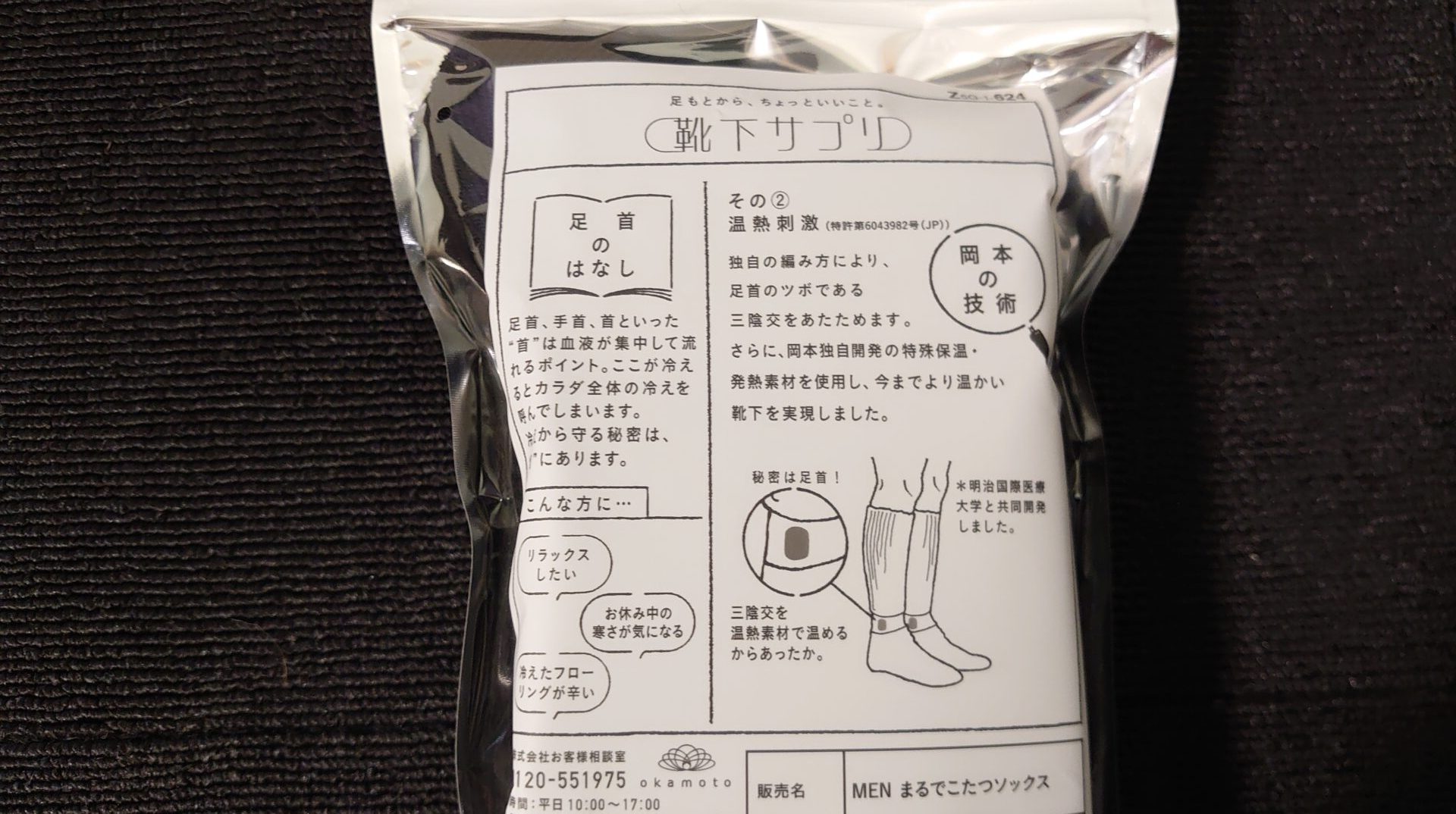 性質的には足首を温めることで体全体をポカポカさせるのだそうな⋯。素材も温熱素材を使用することで寒さを感じにくくさせているらしい。まさにTHE、東洋医学って感じですね。電源を使用して直接温めるわけではないので効果は限定的なものであると思われますが、一方で靴下と同等に扱えるので洗濯はしやすいです。火傷の心配もないので高齢者にも優しい仕様。