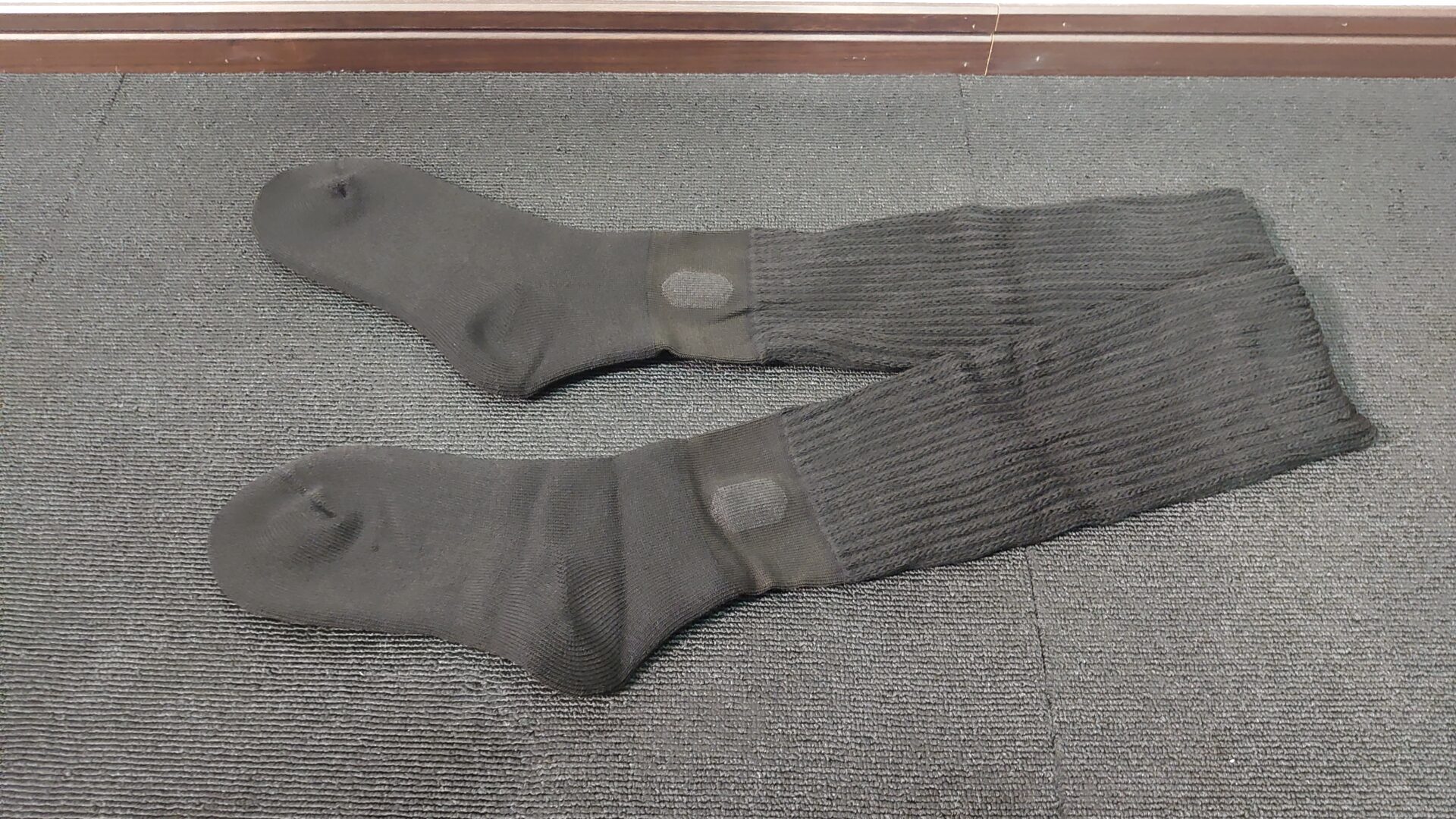 履いてみるとふくらはぎの中間まで覆いかぶさるようなサイズ感でした。