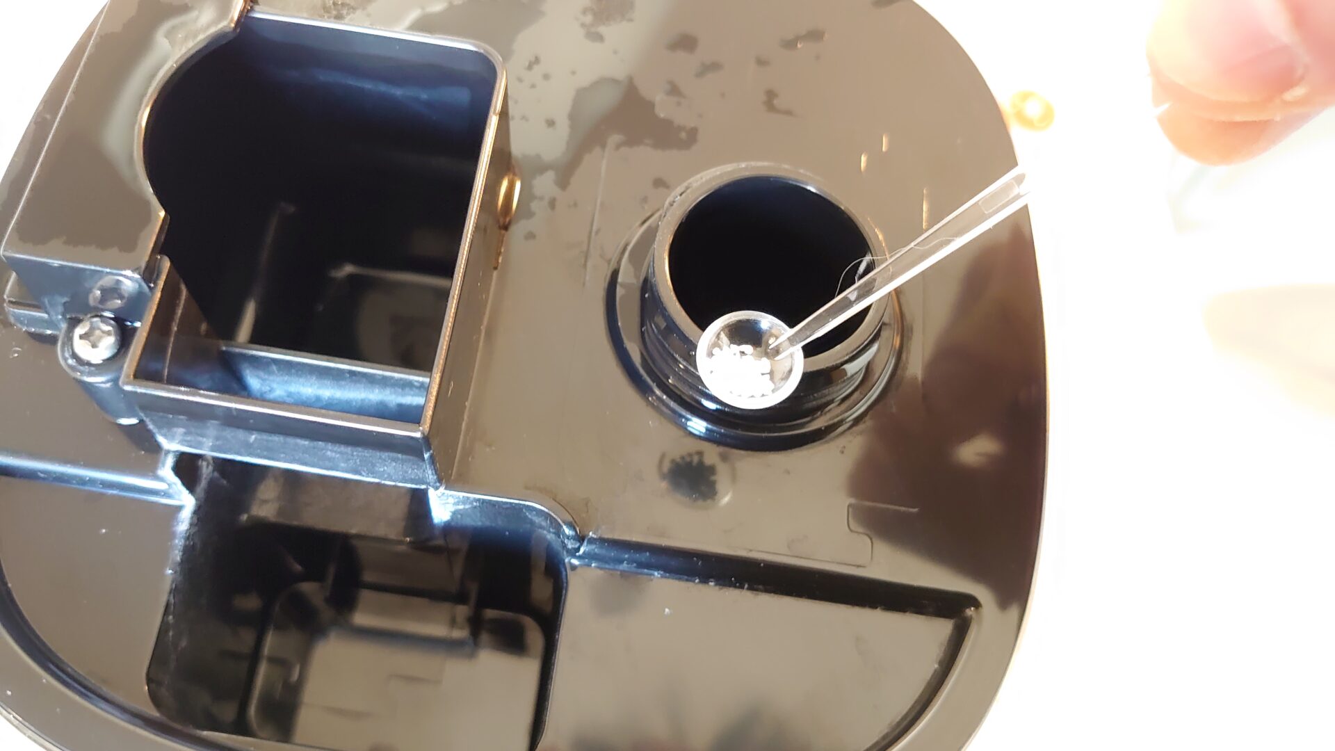 この加湿器は200mlしか容量がないため、小スプーンすりきり半分の0.05gでも過剰濃度です。