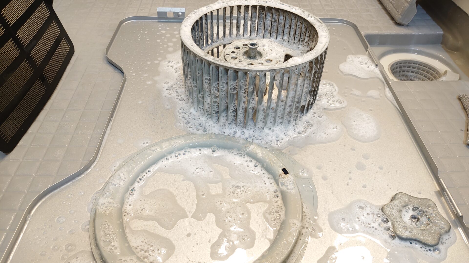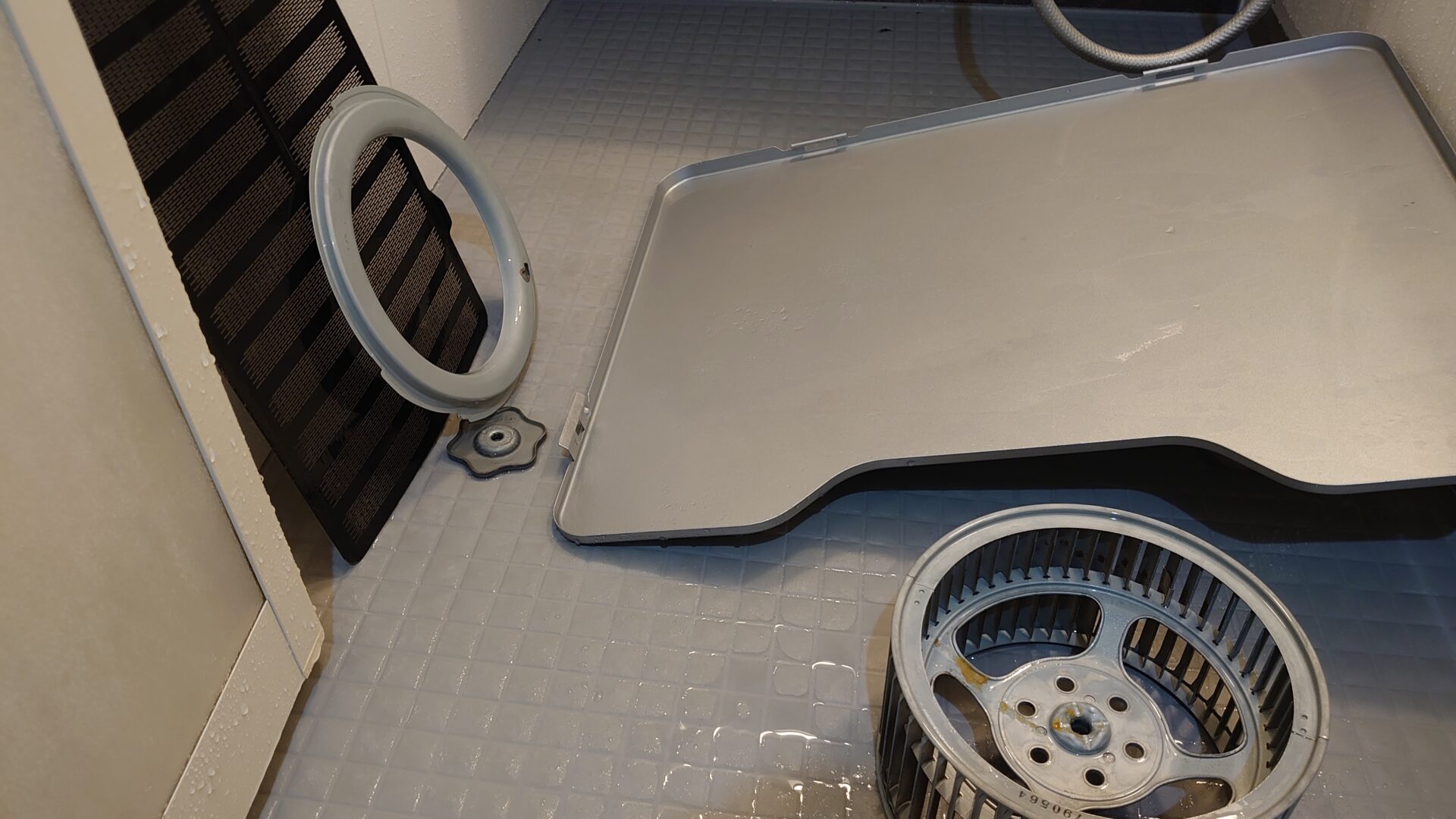 あとは十分に乾かしきるだけ。これだけ掃除をするのに10分もかかっていないという時間効率の良さには本当にビックリしました。これなら半年に1回でなくとも2回程度は定期的にクリーニングができそうです。ちなみにエアコンファンの固定器具はたまに外さないと固くなって回せなくなるので、こちらも定期的に外すような癖をつけておくと後々苦労しなくて済みます。